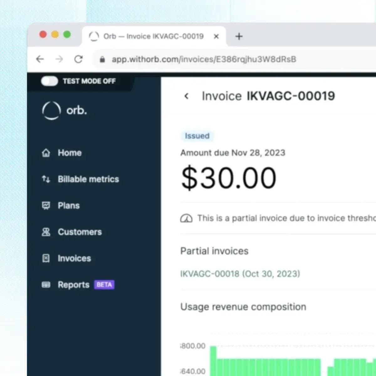 Protecting your company from fraud and nonpayment is important. We built Orb so you can innovate, and let your customers experience your AI product’s magic, without putting you at additional risk.