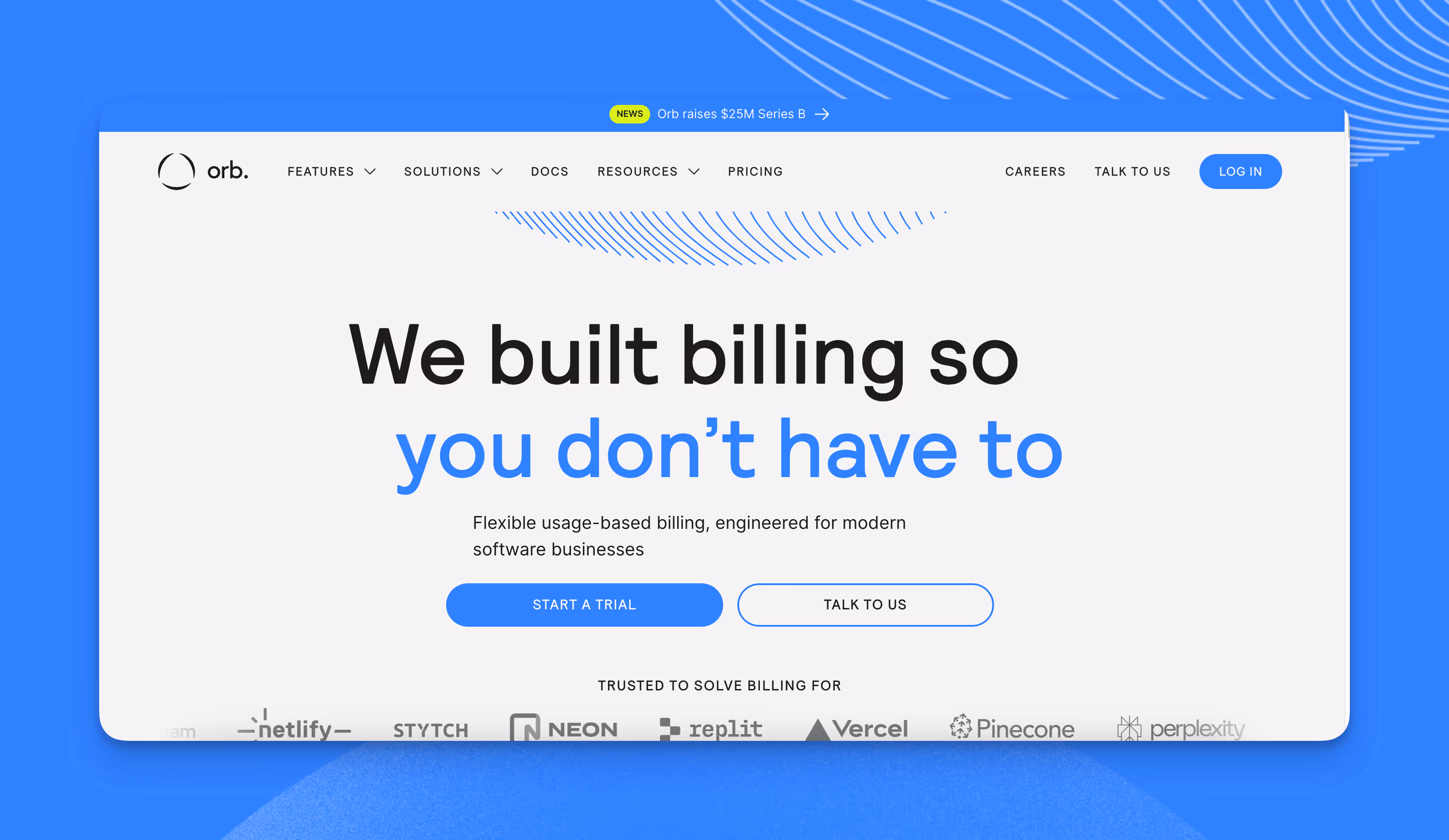 - Usage-based billing: Transparent invoicing for usage-based pricing is central to your model. A platform like Orb excels in this area.