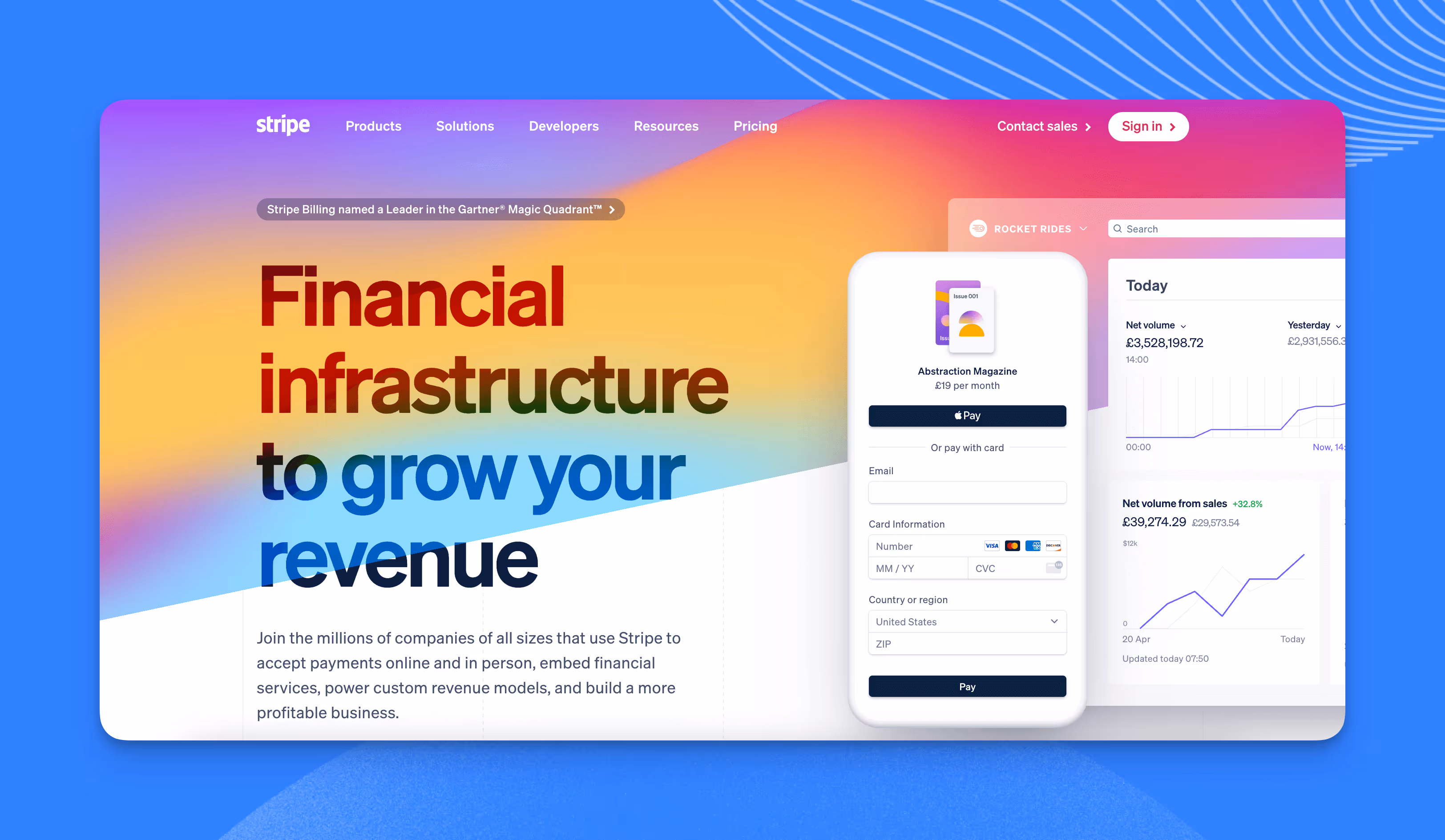 Known for its robust APIs, global reach, and focus on customization, Stripe is ideal for teams that need complete control over their payment and billing stack. Its strength lies in streamlined billing operations and automation tools for managing tax rules across various jurisdictions.