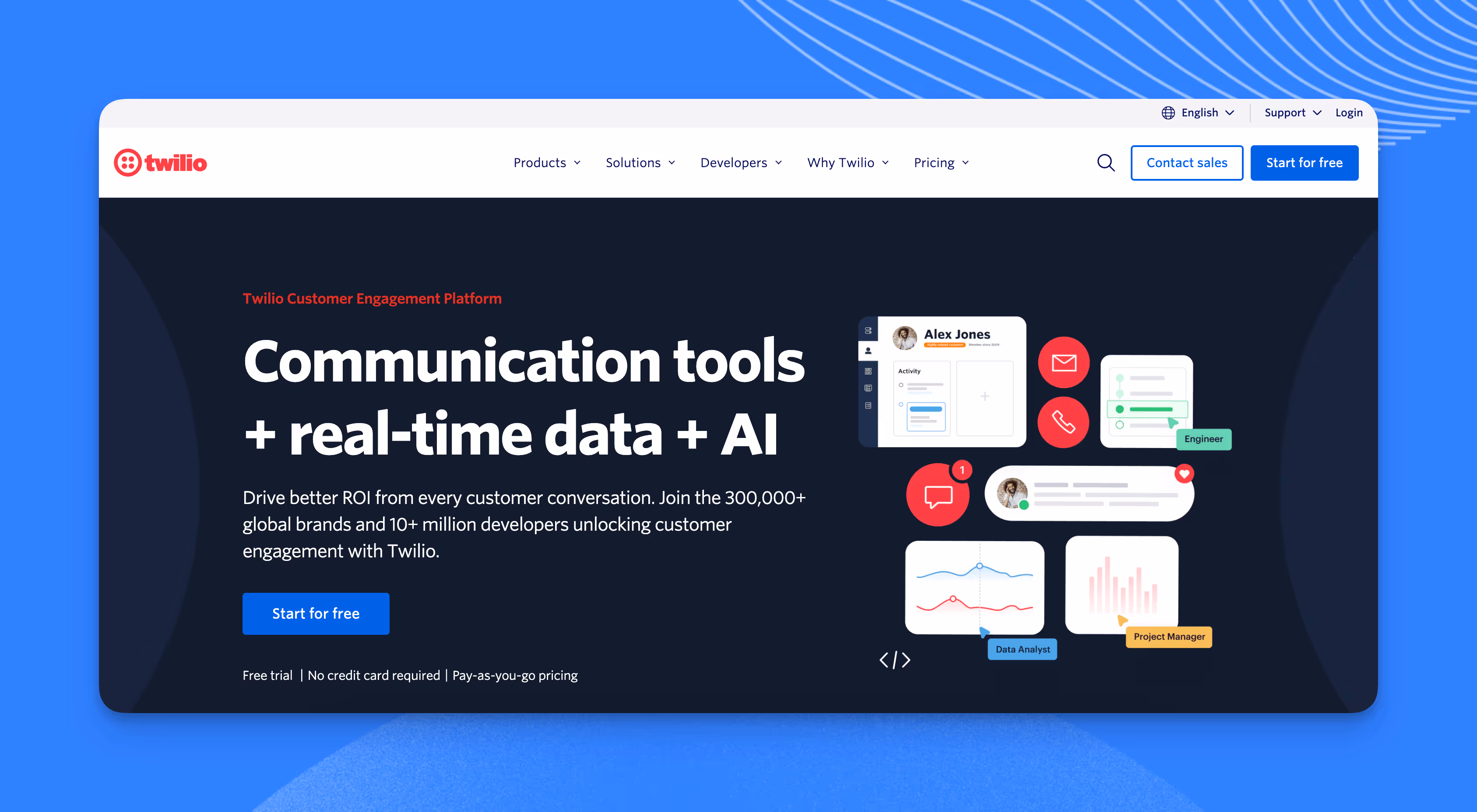Twilio charges customers based on the number of text messages and phone calls they use. This model allows Twilio to cater to many customers, from small businesses to large enterprises.