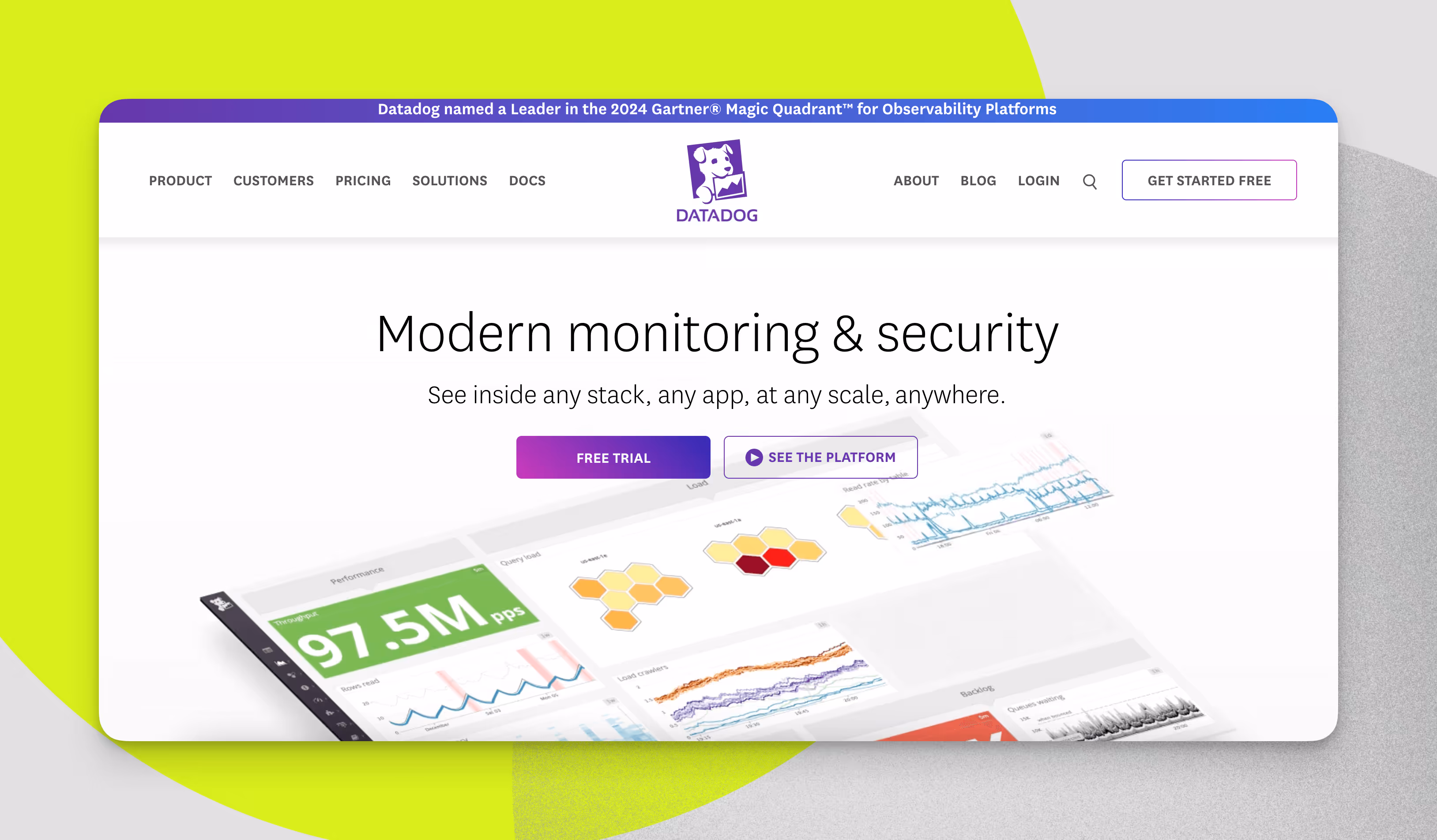 Datadog is a monitoring and analytics platform for cloud-scale applications. It charges customers based on the number of hosts, containers, or events monitored.