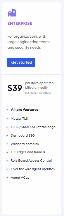 - ngrok pricing: $47/month per seat (or when billed annually, it is $39 per month)