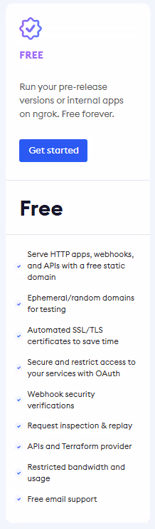 The ngrok free tier does not require a credit card to sign up. It’s a lightweight version designed for testing and personal use.