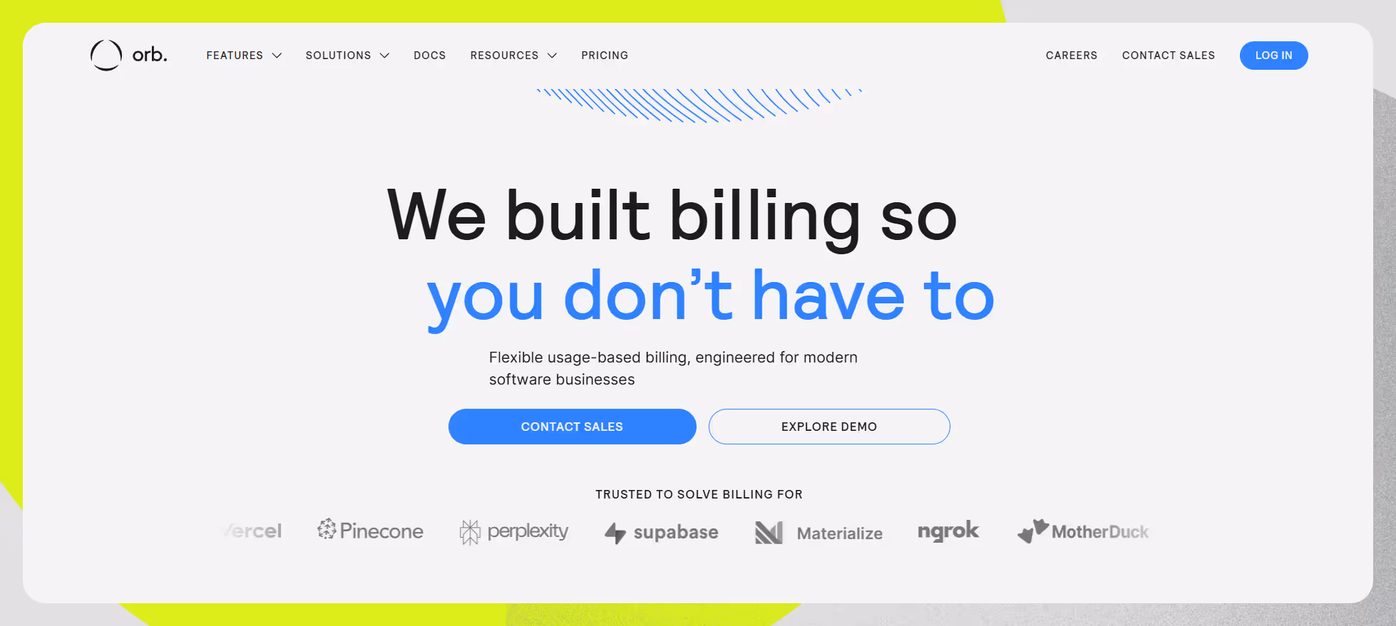 Orb is a done-for-you billing platform with greater extensibility. It’s designed to help SaaS businesses like yours go beyond just sending invoices with accuracy. We help enable growth through accurate billing, flexible pricing, and data-driven insights.