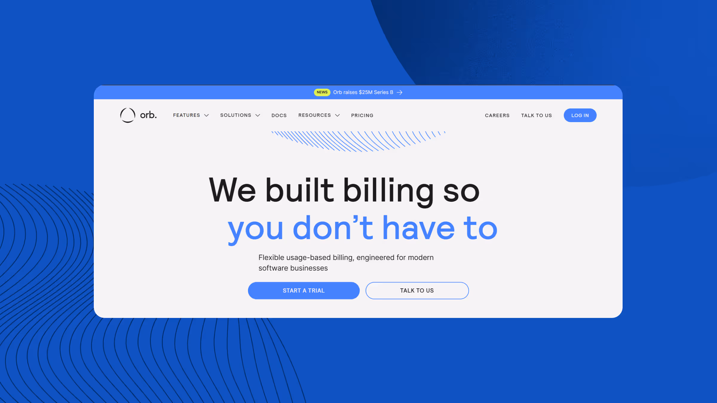 Get started today with Orb’s usage-based billing platform and automate your SaaS subscription billing the right way. Explore Orb’s pricing tiers and find a plan that fits your business needs.