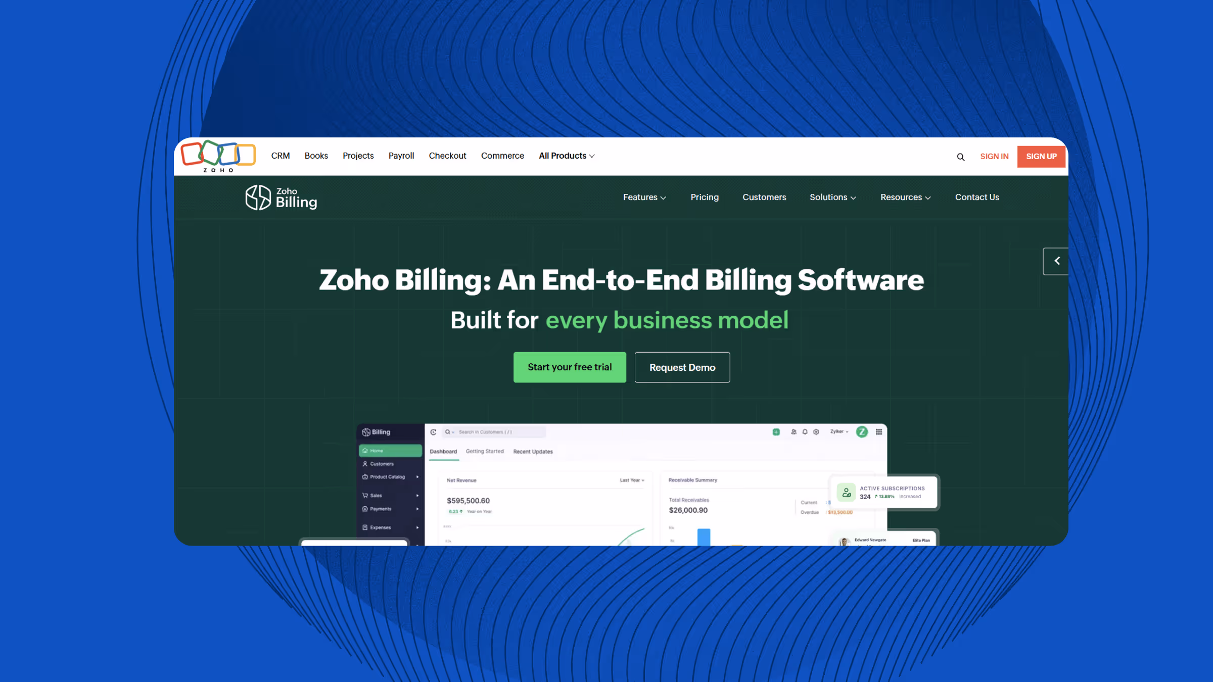 Zoho Billing automates recurring invoices, payments, and subscription plans, built to integrate with the Zoho ecosystem.