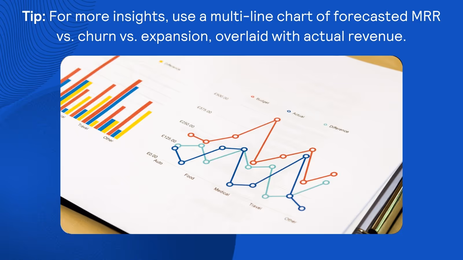 Every forecast is a hypothesis. You’ll need to compare it to real-world results to see how accurate it was. Look at how projected MRR, churn, or usage matched up against actual outcomes. Where you missed the target, dig into the “why.”