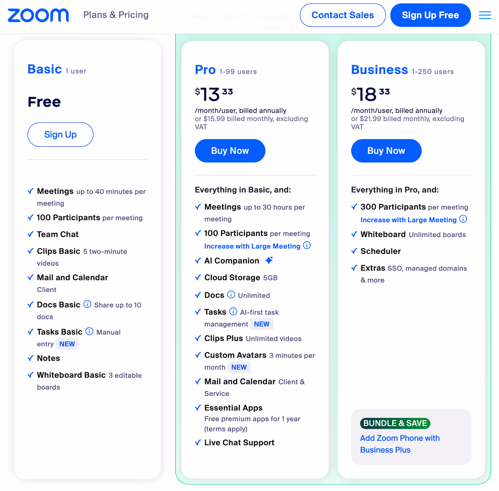 Zoom is a great example of successful growth alignment. It offers a free basic tier with some trial limitations while also providing compelling paid options for extended meeting times and extra features.