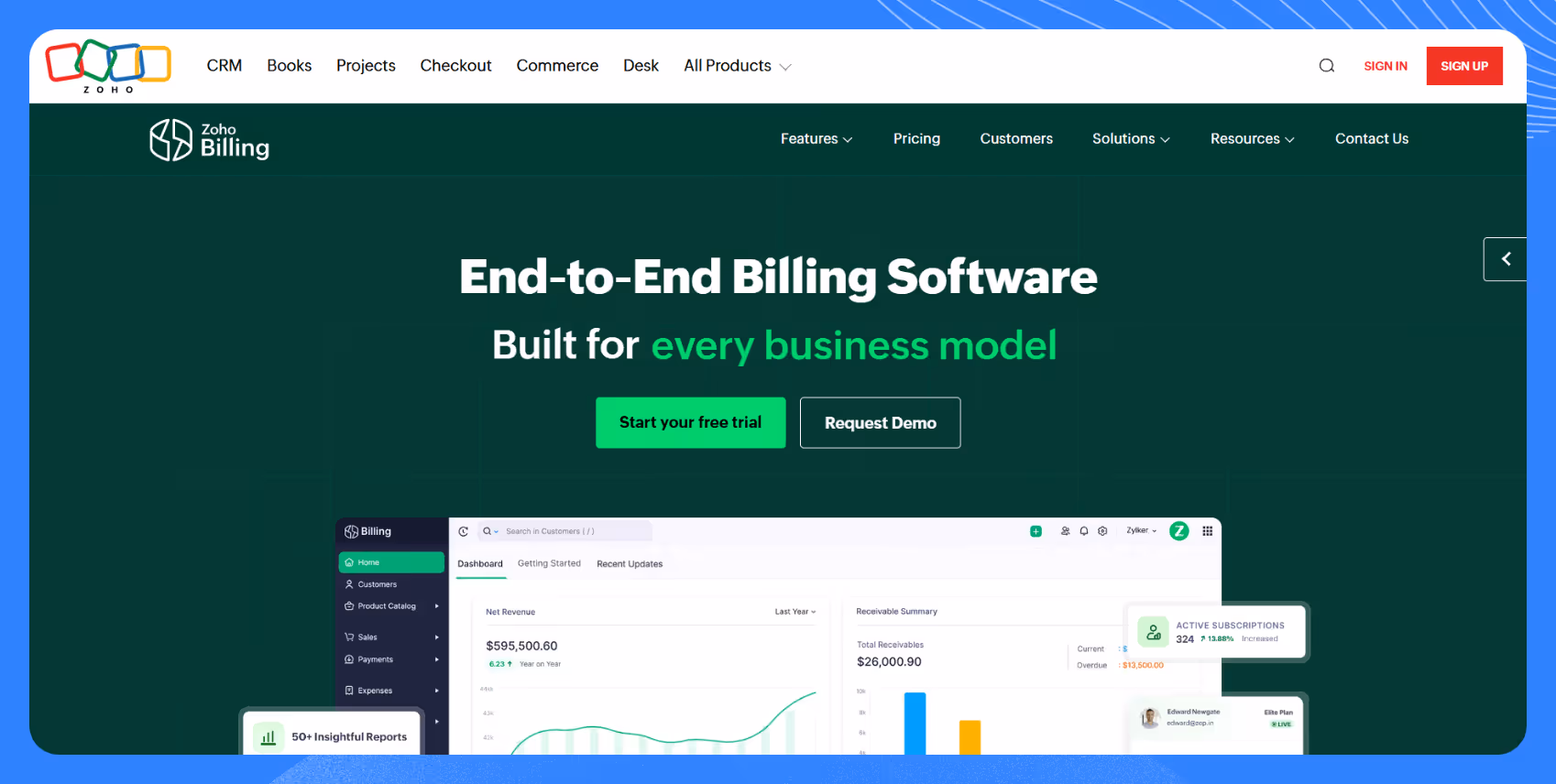 - Zoho Billing: Best for SMBs looking for an affordable and easy-to-use solution integrated with the Zoho suite.